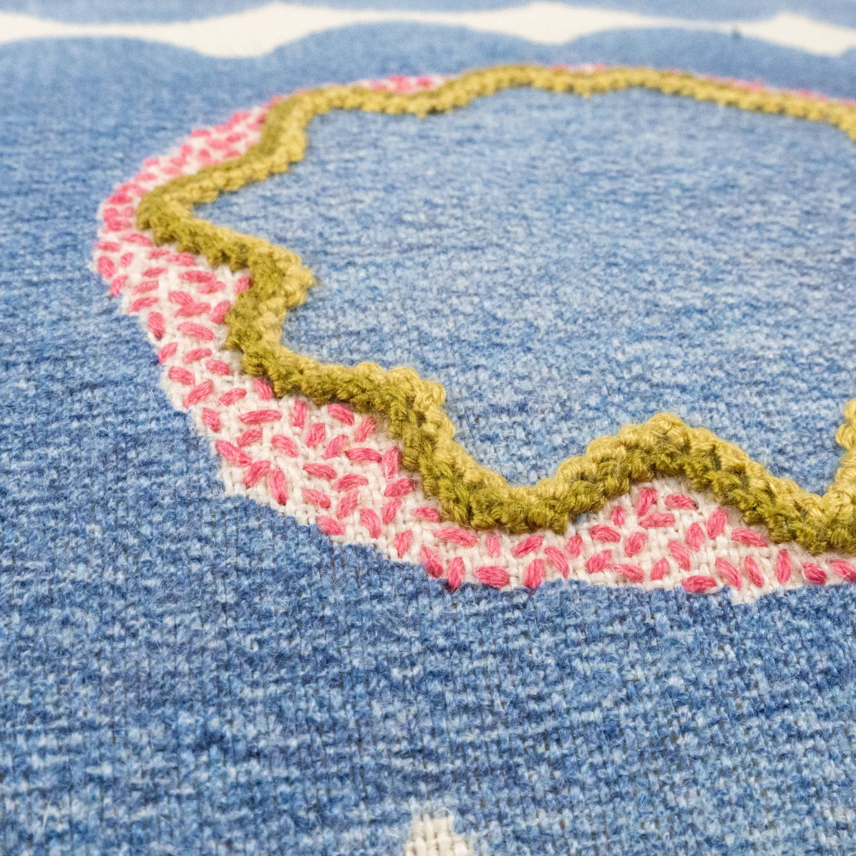 Hand-Embroidered Blithfield Osborne Cushion Blue