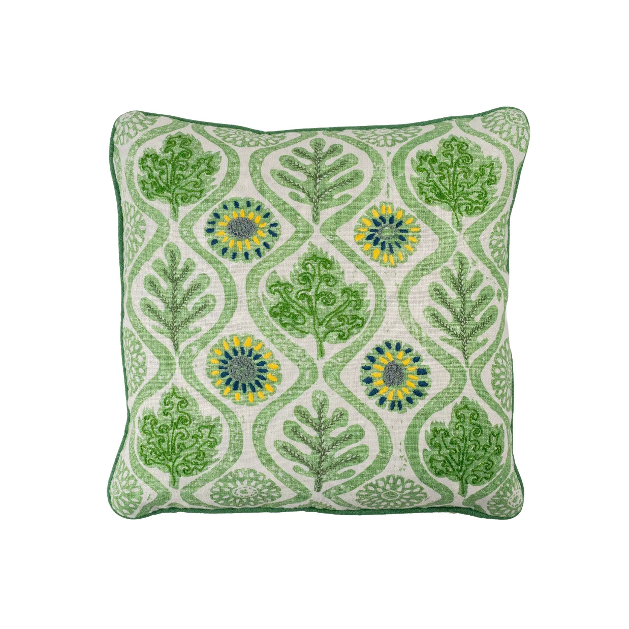 Hand-Embroidered Blithfield Oakleaves Cushion Green