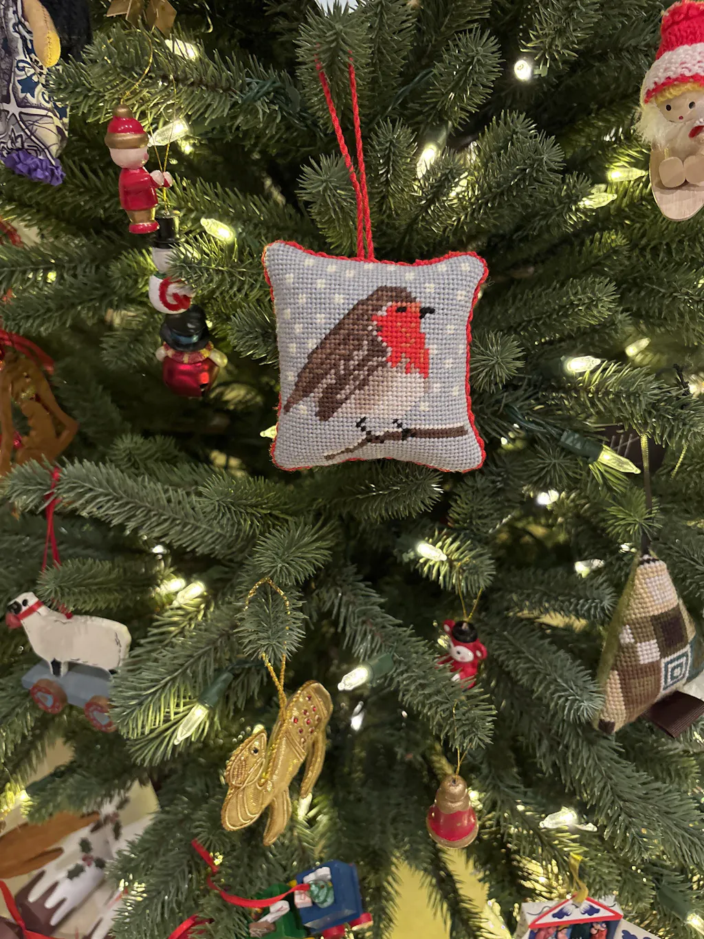 Handmade Needlepoint Robin Christmas Decoration