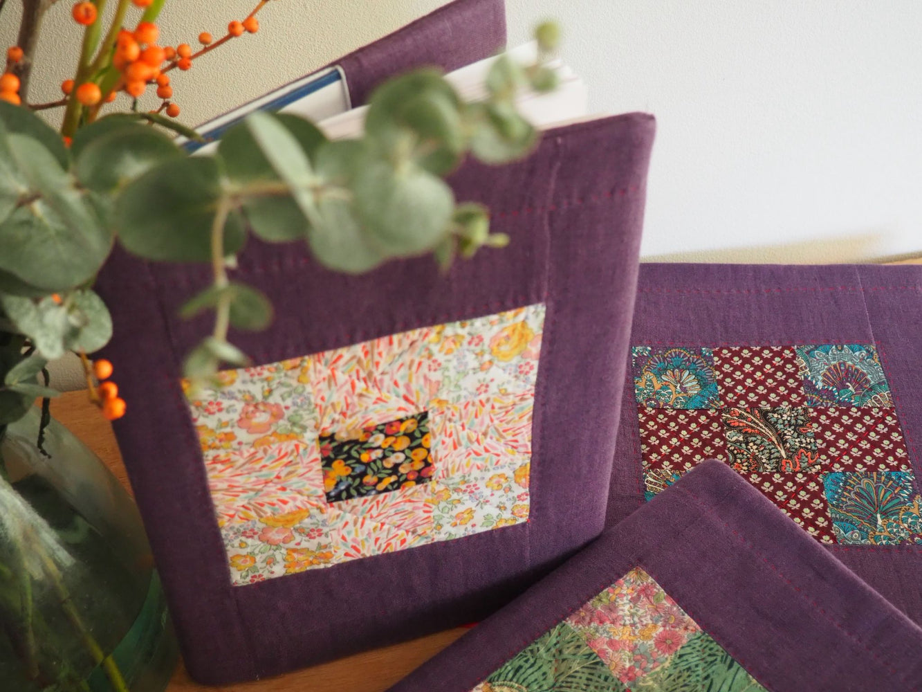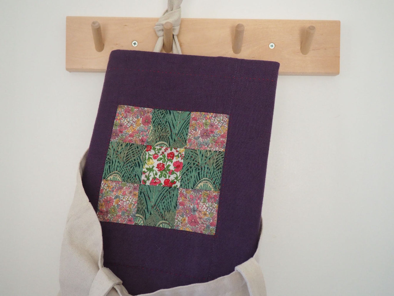 - Purple linen with hand-quilted patchwork Liberty fabrics