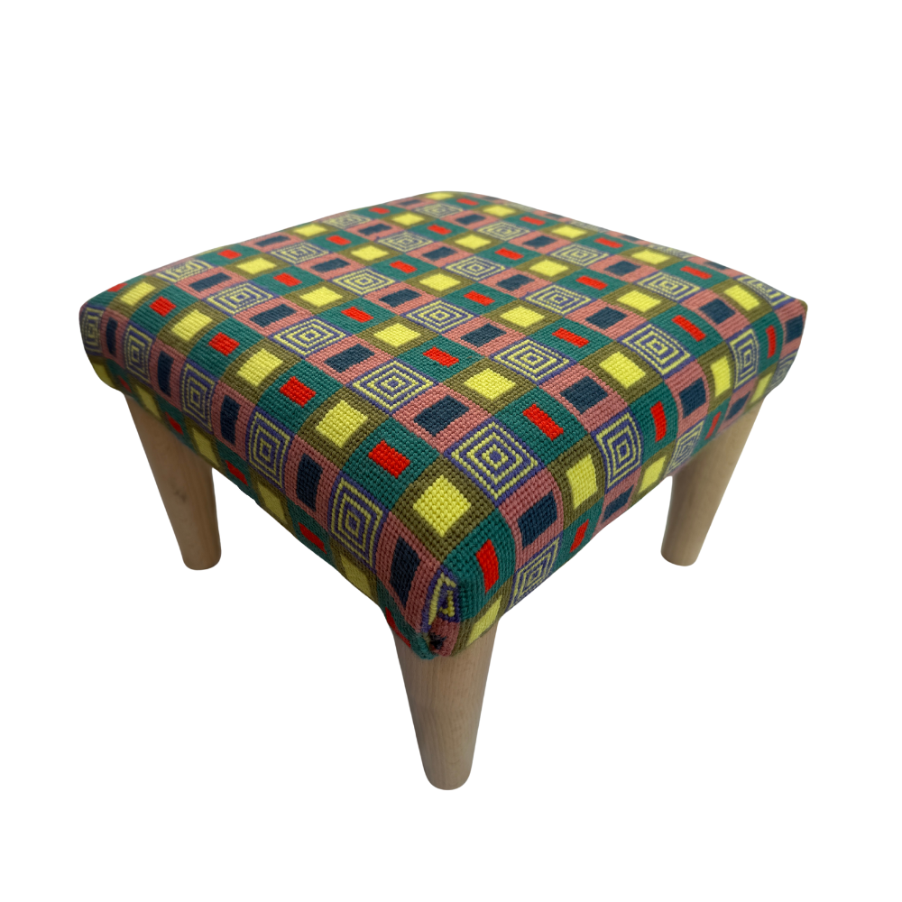 Add a splash of colour to any room with one of our geometric needlepoint footstools, perfect for putting your feet up or even using as a children's seat.