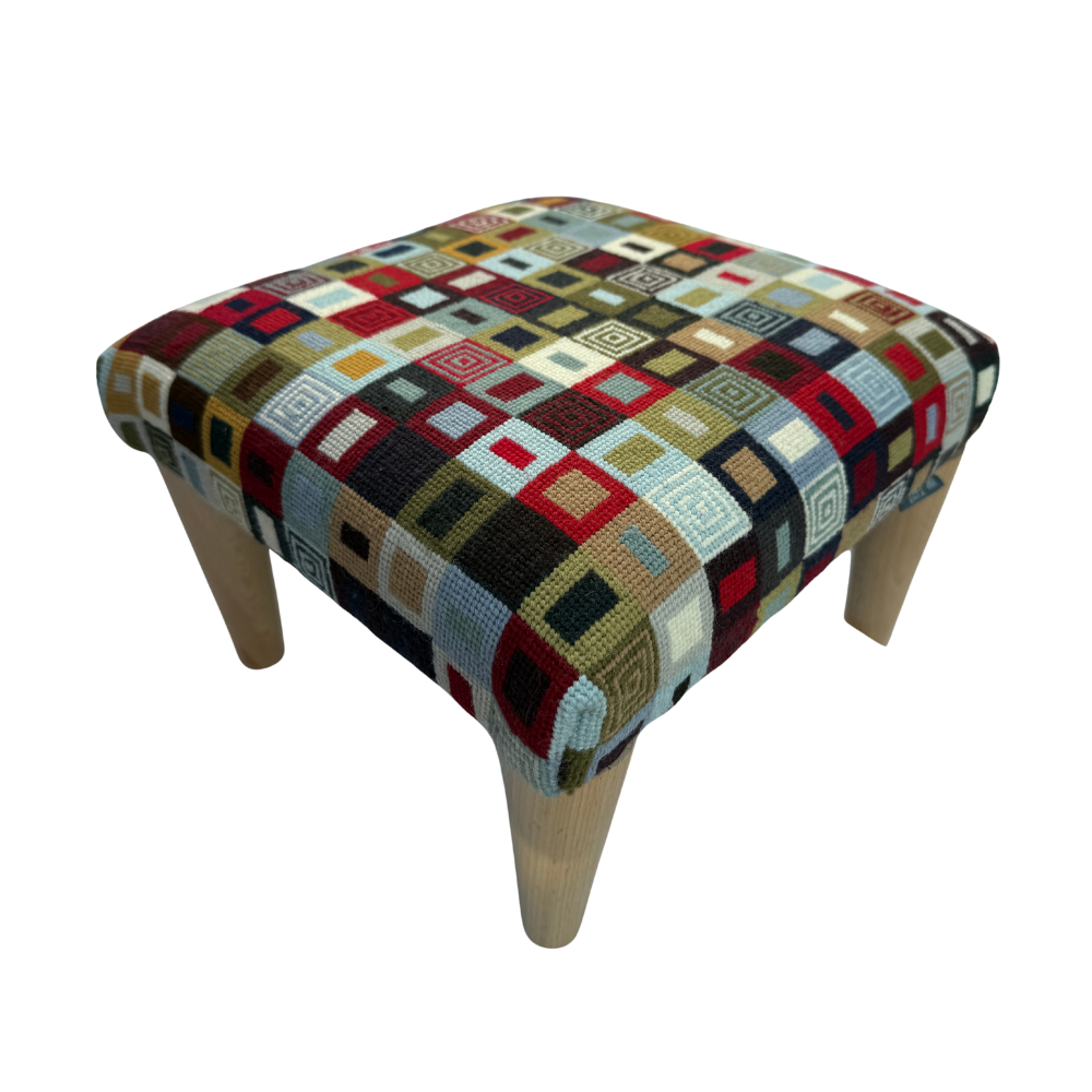 Add a splash of colour to any room with one of our geometric needlepoint footstools, perfect for putting your feet up or even using as a children's seat.