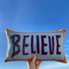 - Feather cushion included. Needlepoint in wool. Dry clean only.