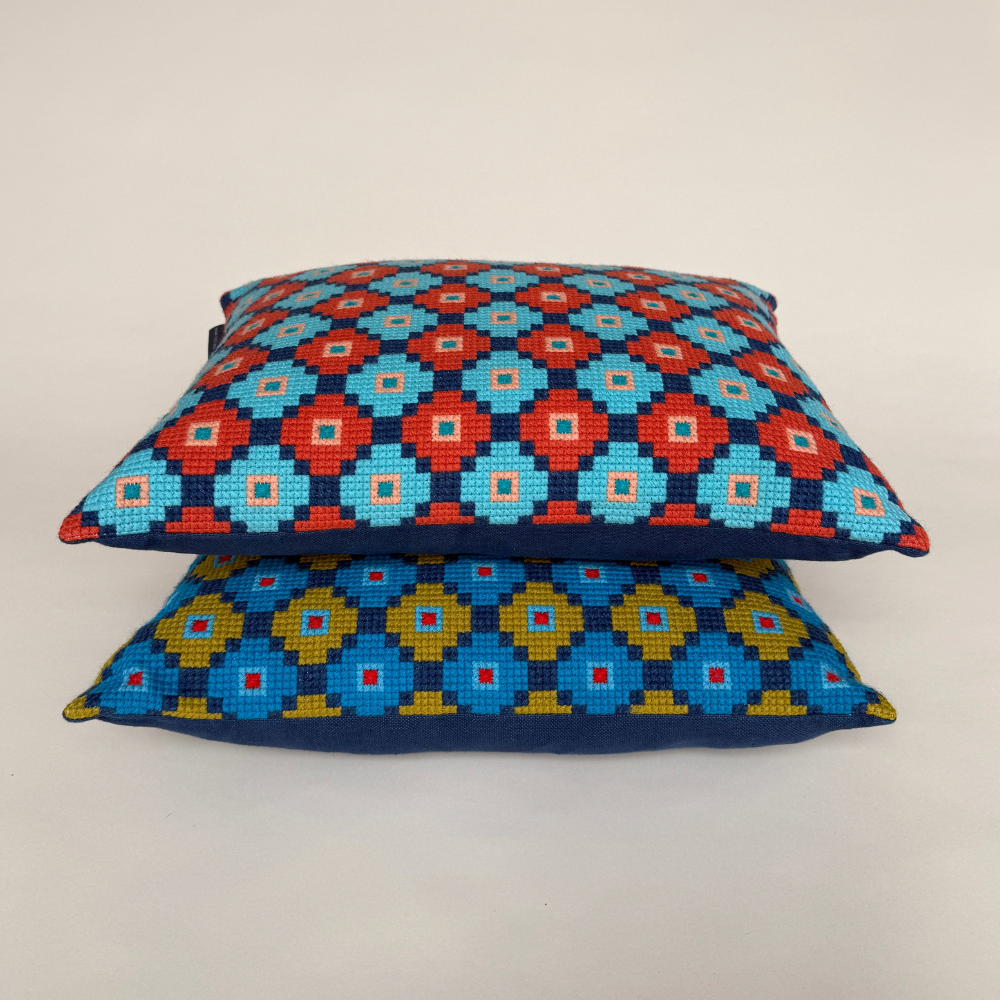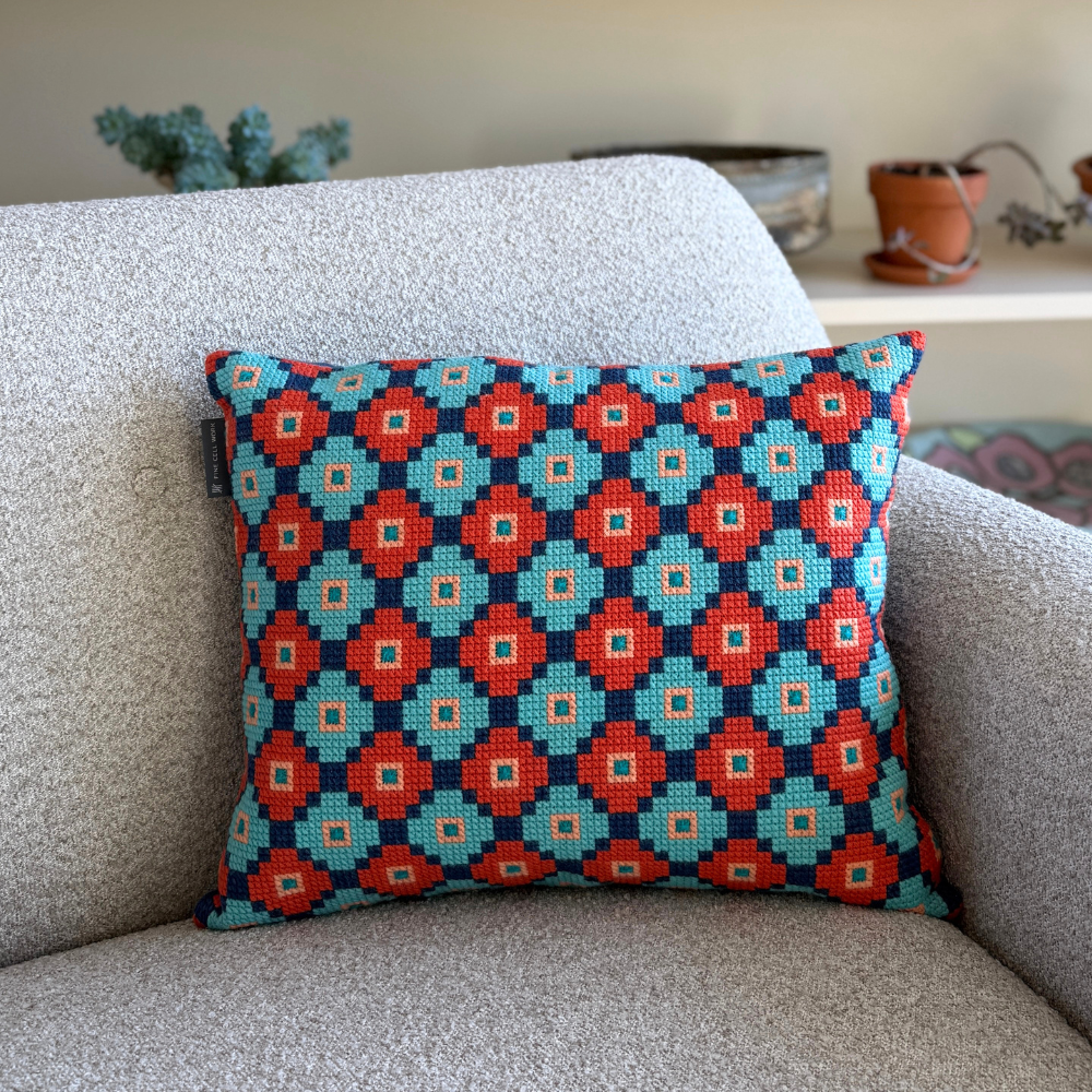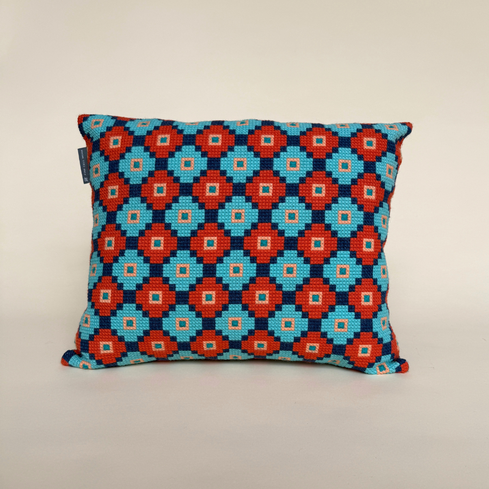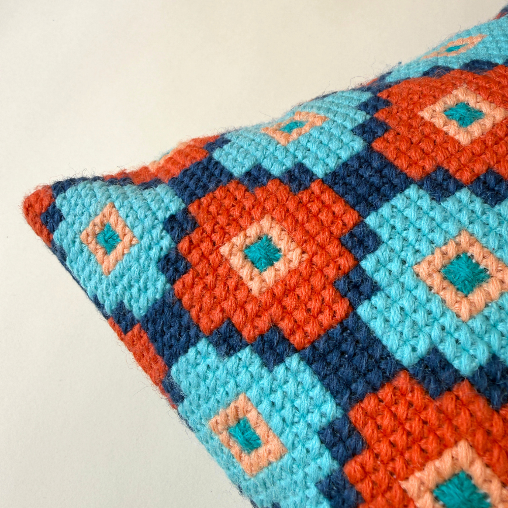 Nelly Needlepoint Cushion - Cyan & Burnt Orange
